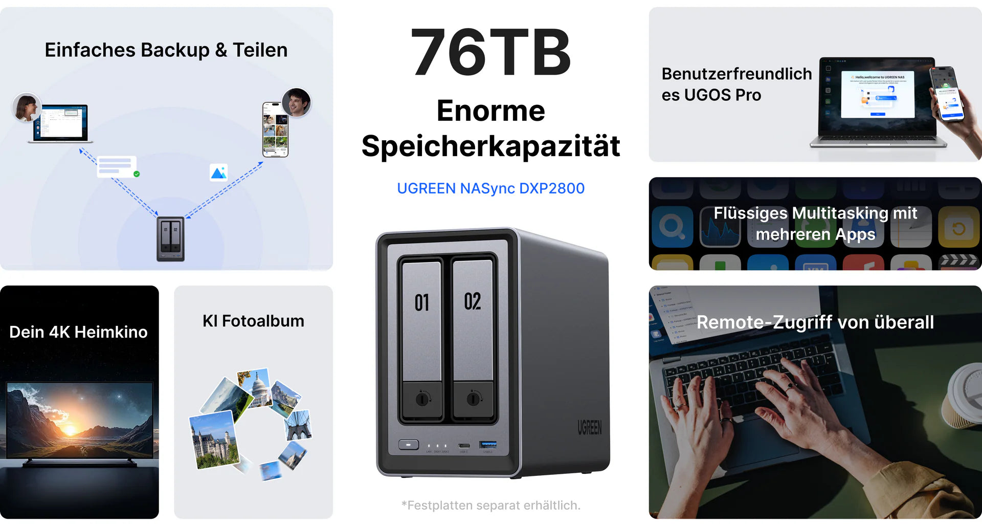 UGREEN NASync DXP2800 NAS System 2-Bay 2x SATA 2x M.2 SSD 1x 2.5GbE 8GB RAM